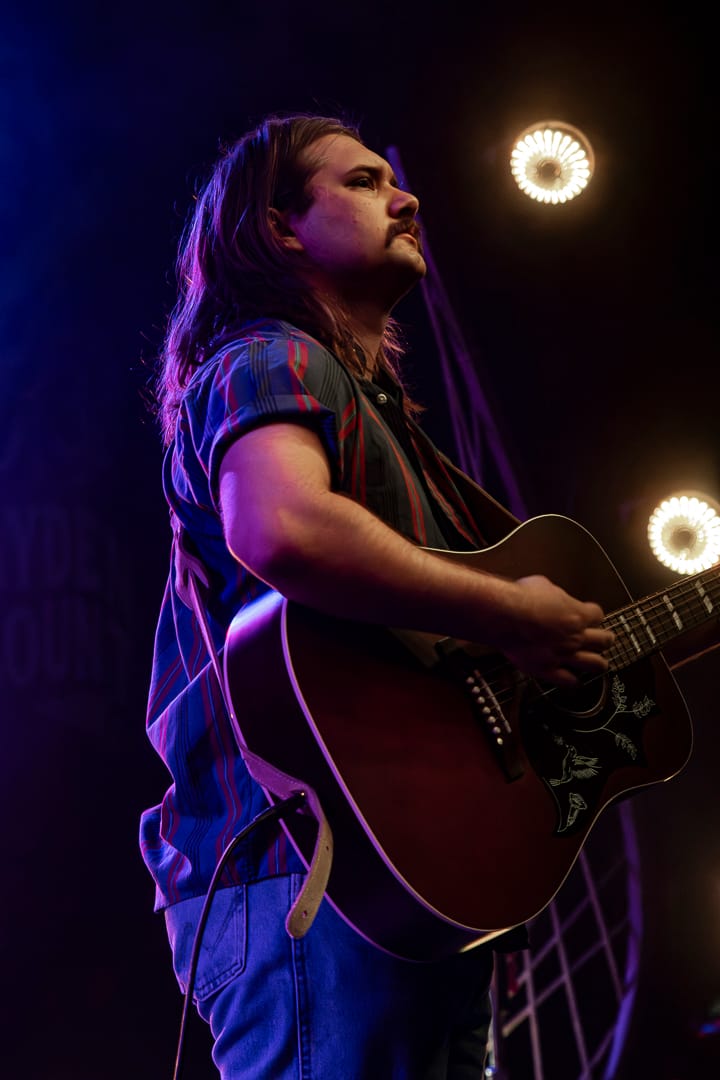 Opening the evening with a quiet confidence, Hayden Blount set the tone with a performance that felt warm, intimate, and effortlessly sincere. Stepping onto the stage with little more than a guitar and a calm presence, Blount quickly drew the room into his orbit, letting gentle melodies and thoughtful lyrics fill the space before the night’s main event. His voice carried a soft, reflective quality that paired beautifully with stripped-back instrumentation, creating a sound that felt both grounded and quietly dreamy, like the first glow of twilight before the sky fully darkens. While the crowd was still filtering in, many paused to listen closely, swaying along as his songs unfolded with an understated honesty that felt refreshingly personal. By the time his set wrapped, the room felt a little warmer and a little more attentive, his music leaving behind a subtle emotional echo that made the transition into the rest of the night feel seamless, as if he had gently opened the door to the atmosphere that would carry through the entire show.