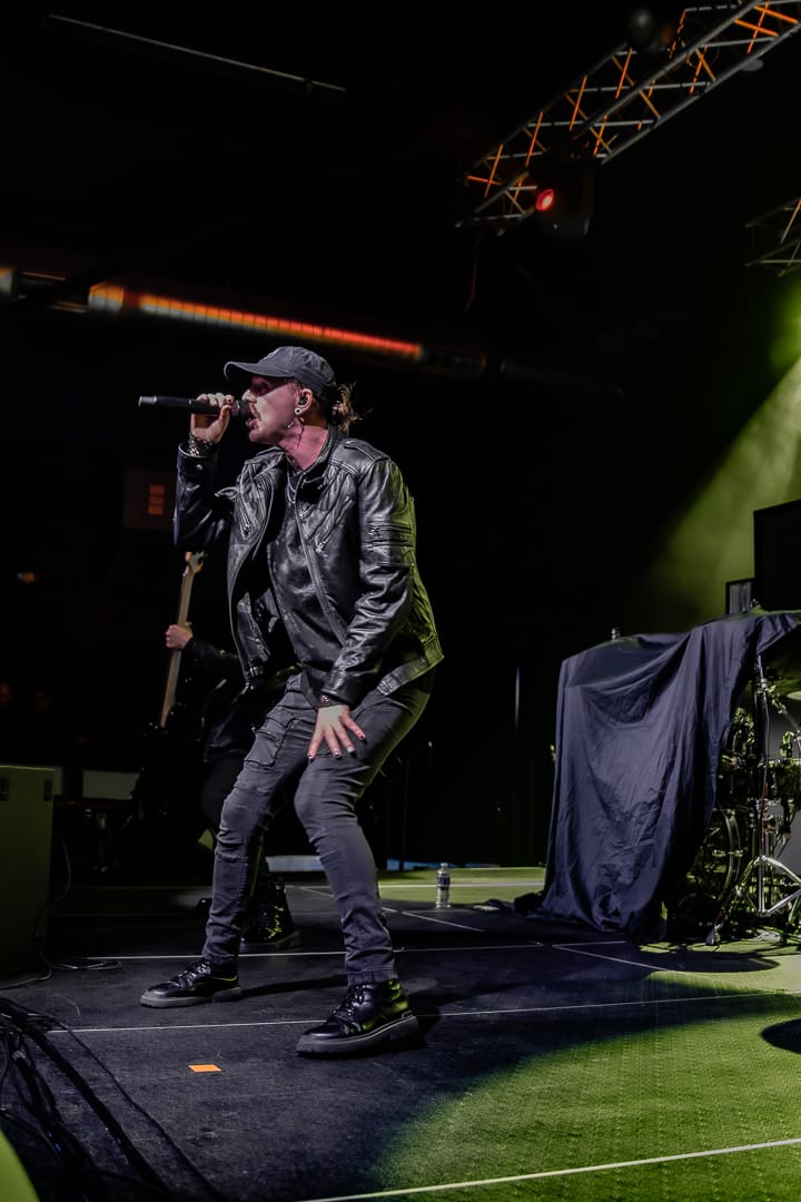 Nevertel took the stage with a sleek, cinematic intensity that immediately shifted the atmosphere, pulling the room into their world with a magnetic, almost hypnotic energy. Their seamless blend of alternative rock, electronic textures, and hard-hitting rhythms felt both polished and emotionally charged, creating a soundscape that washed over the crowd in waves. The band moved with confident precision, each member locked into the others as dynamic lighting and moody ambiance elevated every chorus and drop. Fans were hooked from the first note, singing along, swaying, and erupting when the band hit those massive, cathartic peaks. Nevertel’s performance wasn’t just a follow-up; it was a statement piece, a captivating reminder of how modern rock can evolve while still hitting straight at the heart. They delivered a set that felt immersive, refined, and unforgettable.