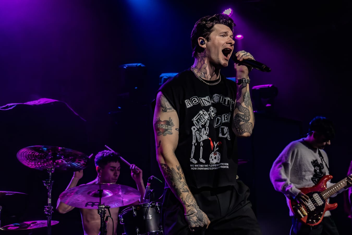 Rain City Drive stormed into their set with a polished urgency that instantly raised the bar for the night, channeling every bit of their signature emo-alt energy into a performance that felt both massive and deeply personal. Their melodies swelled with emotion, carried by powerful vocals that soared over layers of shimmering guitars and pulse-tight rhythms. The crowd lit up from the moment they hit the first note, singing every lyric like a confession, bouncing with the band’s infectious momentum, and hanging onto those explosive hooks that seemed to vibrate through the entire venue. Rain City Drive played with a chemistry that was impossible to ignore, shifting effortlessly between heart-on-sleeve vulnerability and full-throttle anthemic highs. Their set wasn’t just another step in the lineup; it was a captivating, cathartic rush that left the room buzzing long after the final chord rang out.